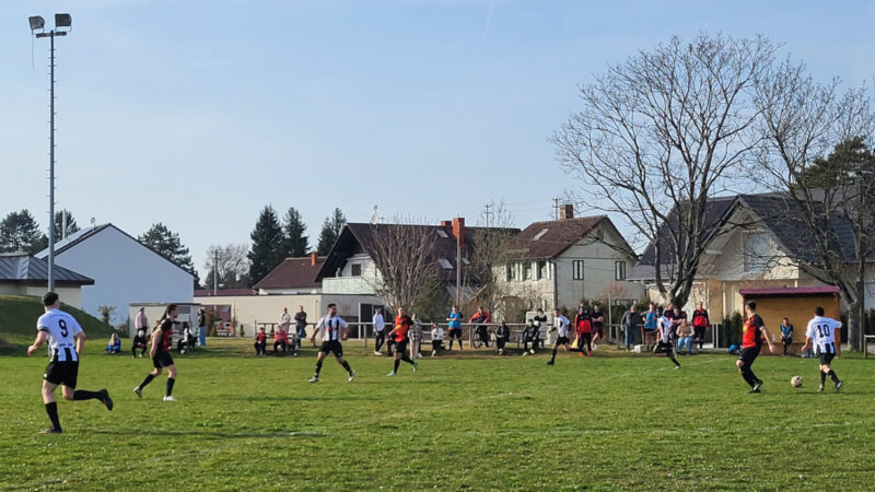 Die Anfangsphase auf dem gewohnt unebenen Geläuf war geprägt von großer Motivation, die leider früh in ein Foul im eigenen Sechzehner mündete. Der fällige Elfmeter bescherte den Gästen das 0:1. Kurz darauf kam zum schwierigen Boden auch noch Pech dazu: Ein langer, hoher Ball segelte in Richtung unseres Strafraums. Durch die tiefstehende Sonne irritiert, konnte das Leder nur unzureichend direkt vor die Füße des Gegners abgewehrt werden – 0:2. Als dann fast aus dem Nichts auch noch das 0:3 fiel, schien die Partie bereits gelaufen, zumal der Platz bei unseren eigenen Chancen eher als zusätzlicher Verteidiger fungierte.