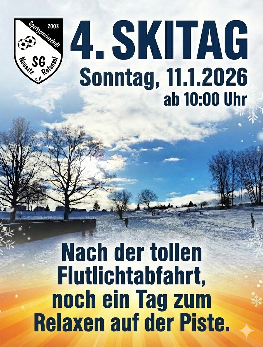 - Skitage und FlutlichtabfahrtBericht Ralf Weber Im Januar 2026 fanden die ersten Abfahrten am Skilift Neusatz statt. An vier Tagen konnte der Skilift geöffnet werden. Dazu kam eine besondere Flutlichtabfahrt, die durch die örtliche freiwillige Feuerwehr Neusatz/Rotensol ermöglicht wurde. Dazu ein großes Dankeschön.